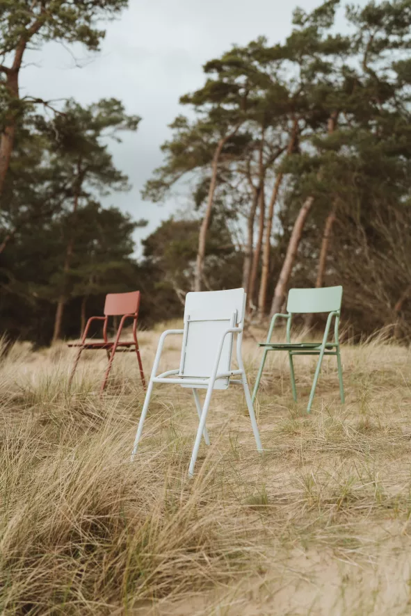 De Flip-Up tuinstoel van Weltevree is ontworpen door Théo Blanchard. De stoel is 51 centimeter breed, 53,5 centimeter diep, 84 centimeter hoog en heeft een gewicht van 5,5 kilogram. De stoel is gemaakt van aluminium en is afgewerkt met een poedercoating. Het is mogelijk de tuinstoel buiten te bewaren, maar Weltevree adviseert de stoel binnen en op een droge plek te bewaren. De Flip-Up is horizontaal stapelbaar, doordat de zitting opklapbaar is; handig! De Flip-Up tuinstoel is verkrijgbaar in verschillende kleuren.