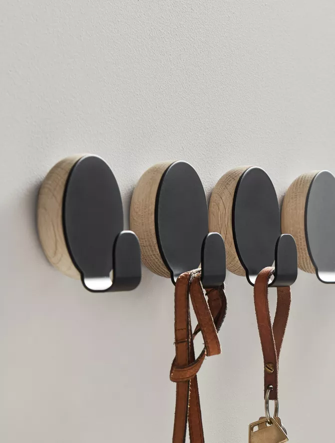 De Haak haak van Woud heeft een hoogte van 9 centimeter, een breedte van 8 centimeter en een diepte van 4,3 centimeter. Deze haak is gemaakt van eikenhout en geverfd metaal en is voorzien van een metalen beugel waarmee je deze haak aan de muur kunt monteren. De benodigde schroeven hiervoor zijn inbegrepen. De Haak haak van Woud is in verschillende uitvoeringen verkrijgbaar.